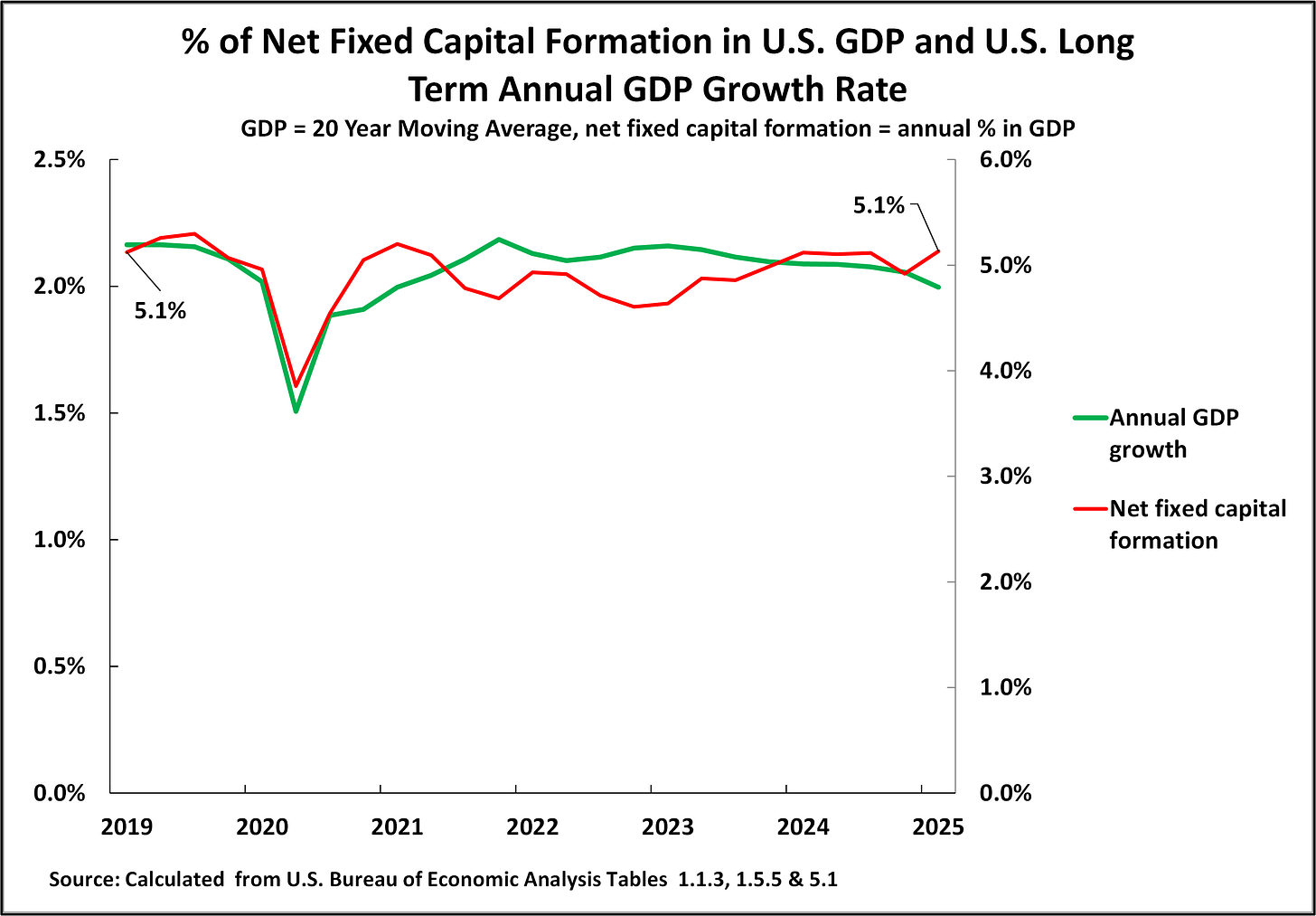 No current decline in the percentage of net fixed investment in U.S. GDP