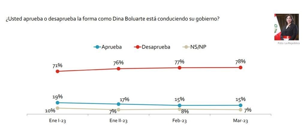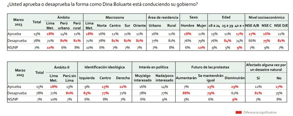 The mainstream think tank the Institute of Peruvian Studies (IEP) has conducted regular opinion surveys. IEP's March poll showed that the unelected coup regime is extremely unpopular among all parts of society.