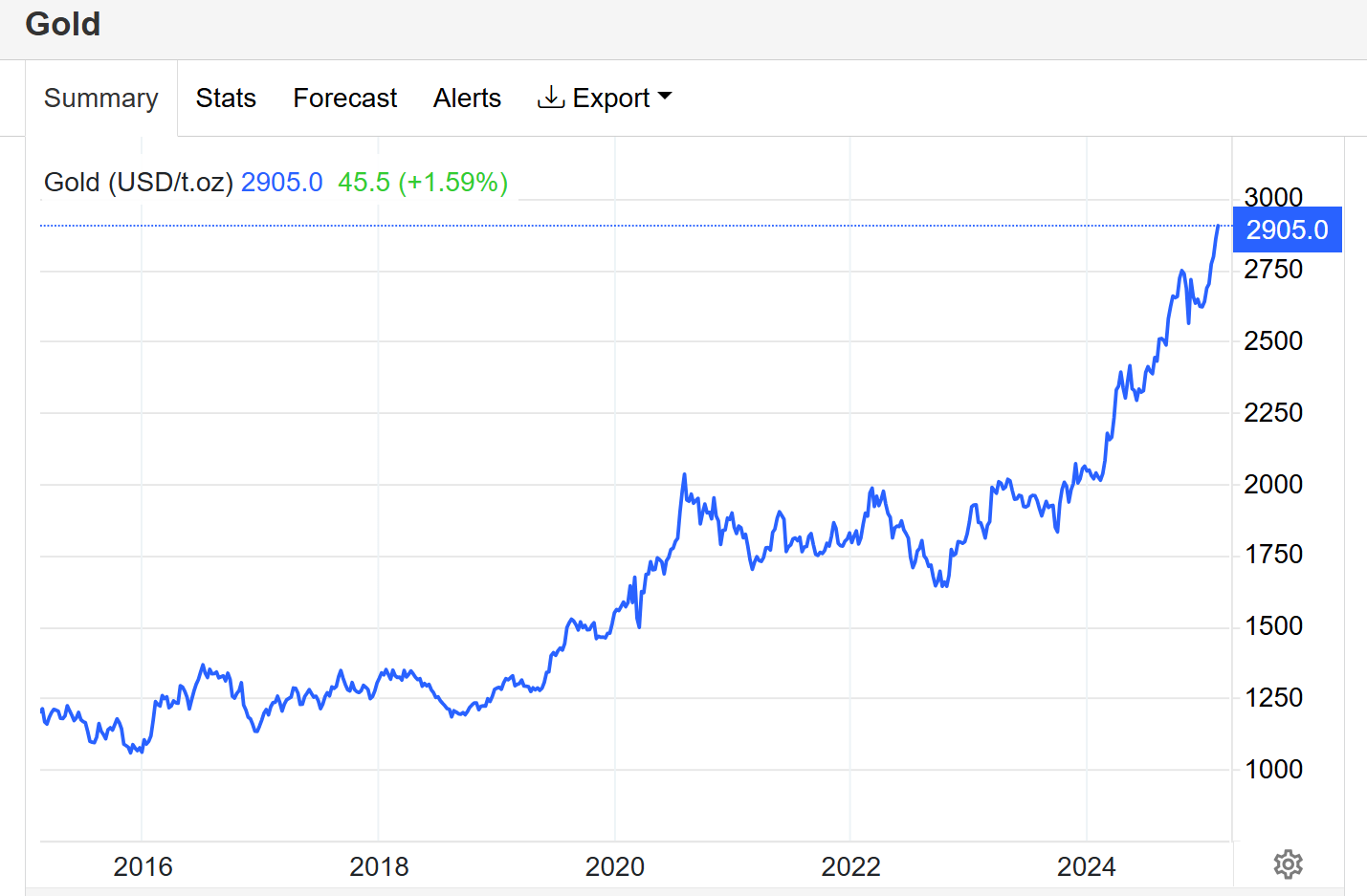 On Monday, February 10th, the week started with gold rising to over $2,900 an ounce. So we're on the verge of it going up to $3,000 an ounce. That's a quantum leap.