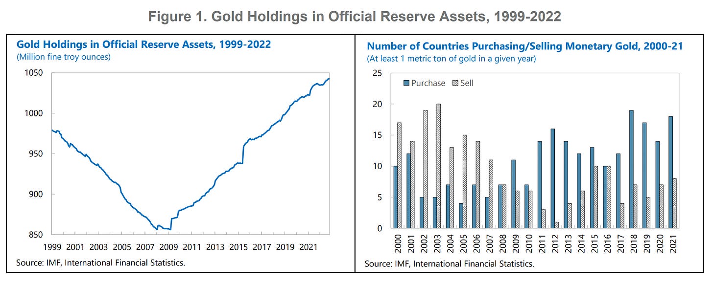 We've seen, in the last decades, the central banks have devoted a steady rise in the proportion of their reserves that they hold in gold, and proportionately less of their reserves in the form of U.S. dollars.