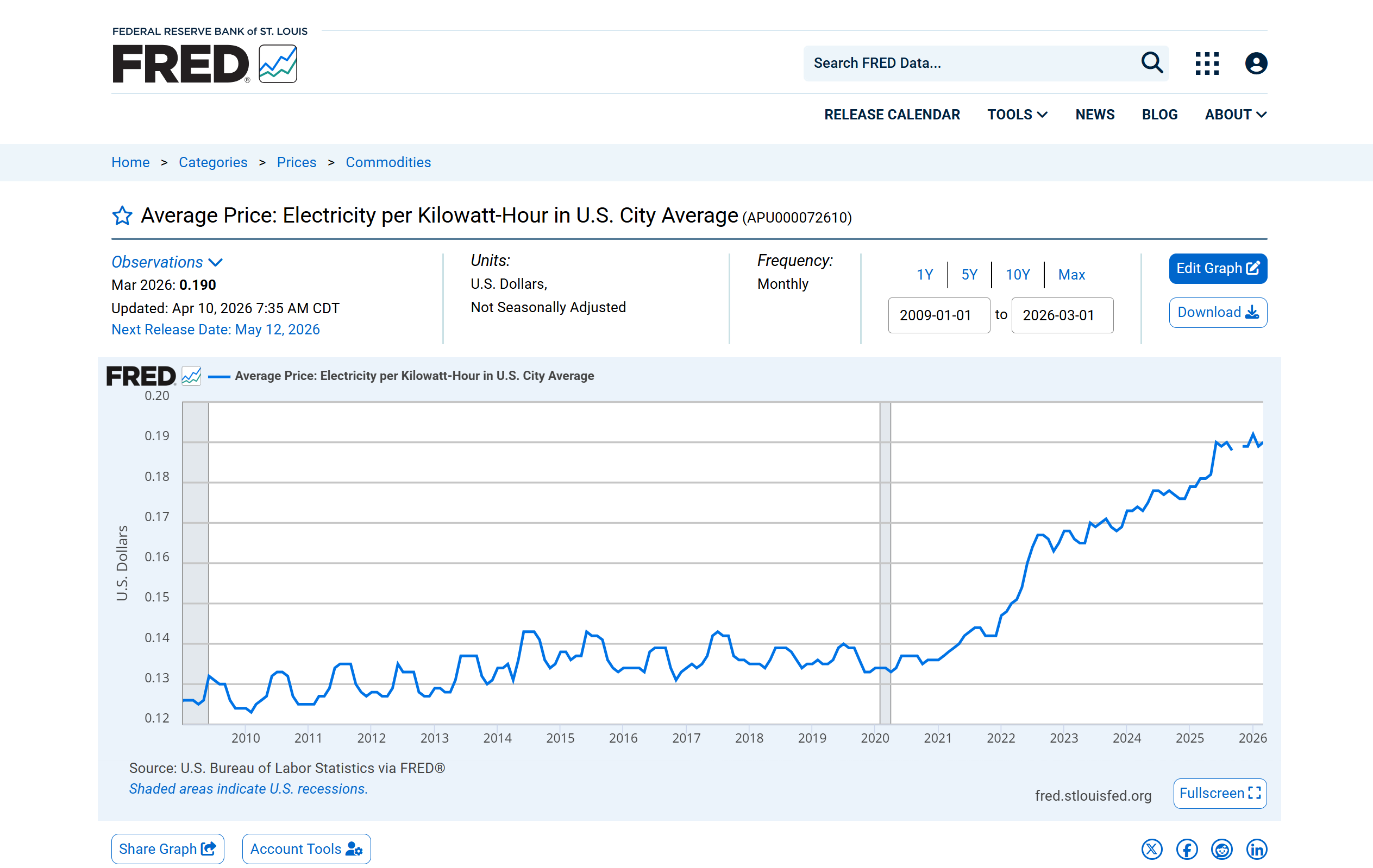 And there’s been hardly any increase in America’s capacity to produce electricity, so that, as new demand for electricity is added, the price of electricity has gone up for everybody.