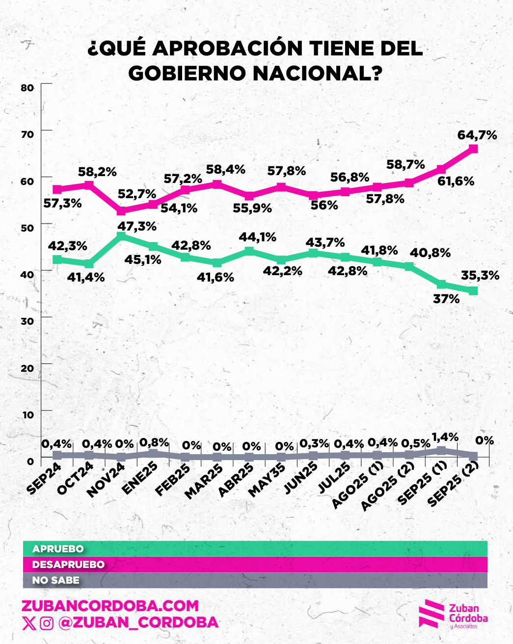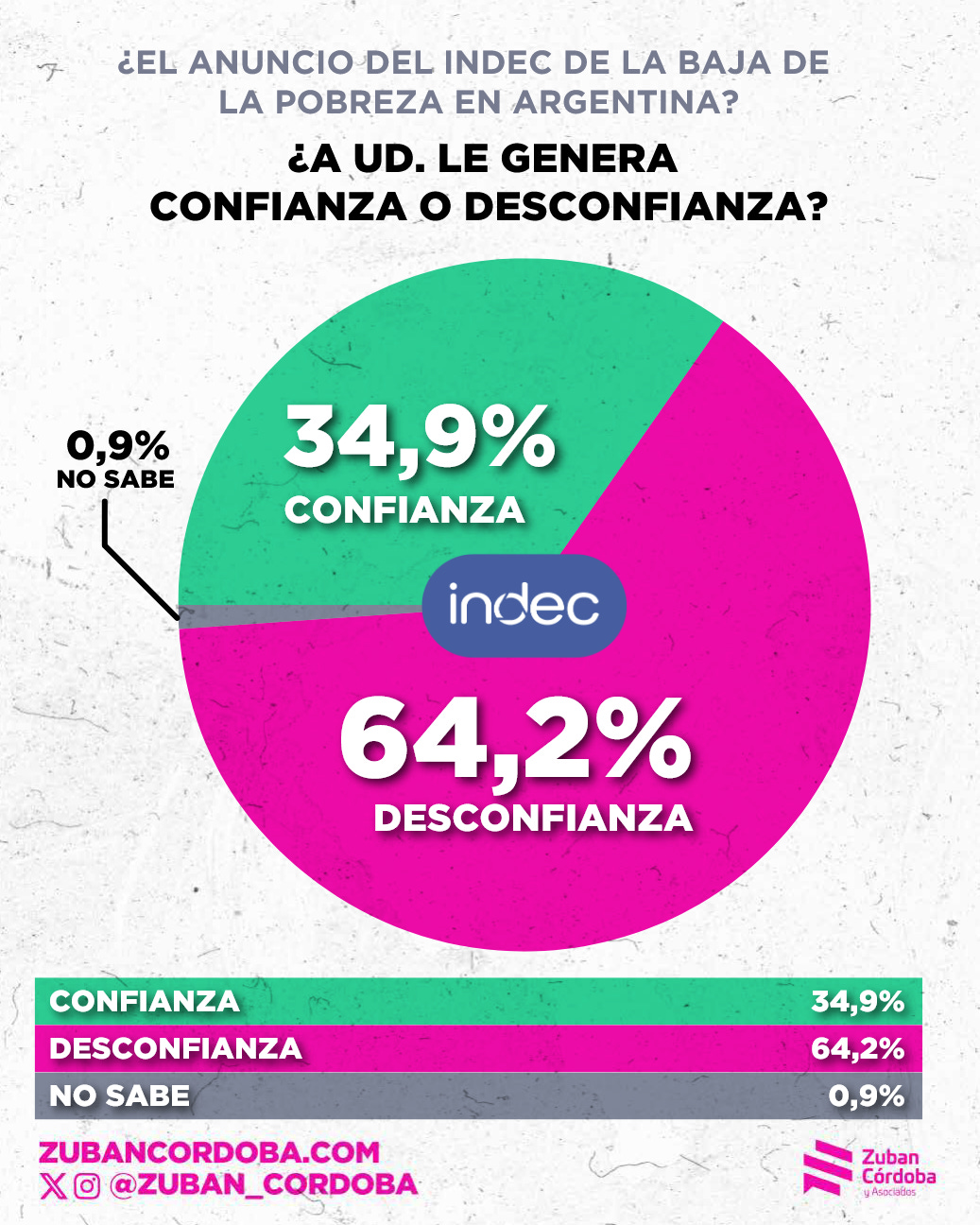 A poll published in early October found that nearly two-thirds of Argentines, 64.2% of the population, do not believe that the poverty rate has truly fallen under Milei.