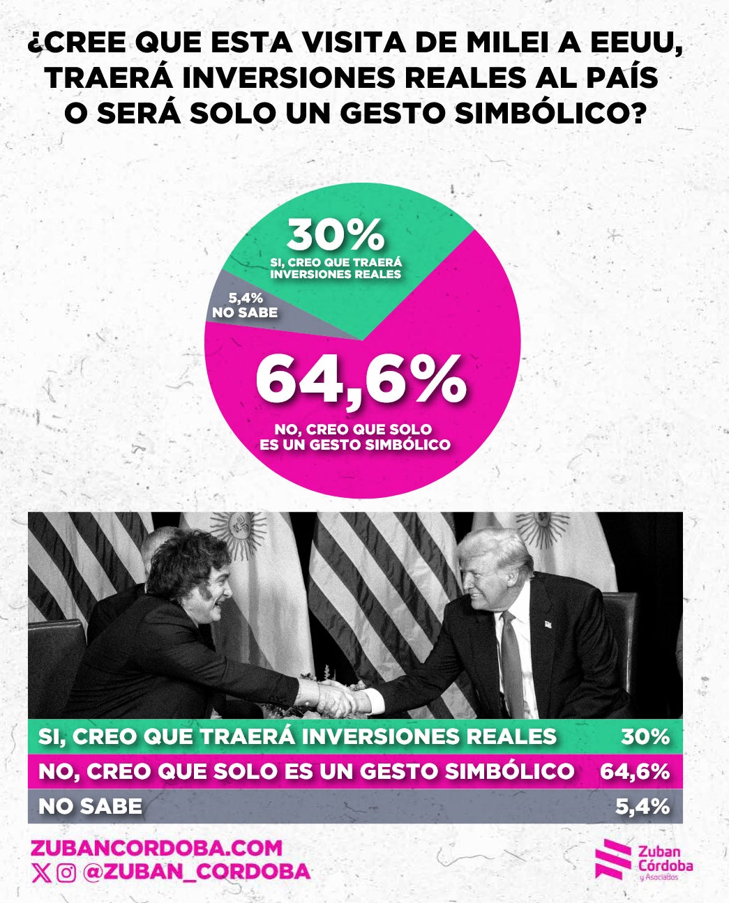 The same poll found that the majority of Argentines oppose Milei’s close alliance with Donald Trump. Nearly two-thirds, 64.6%, said that Milei’s trip to the United States in September will not bring real investment to Argentina, and that it was merely a symbolic political act.