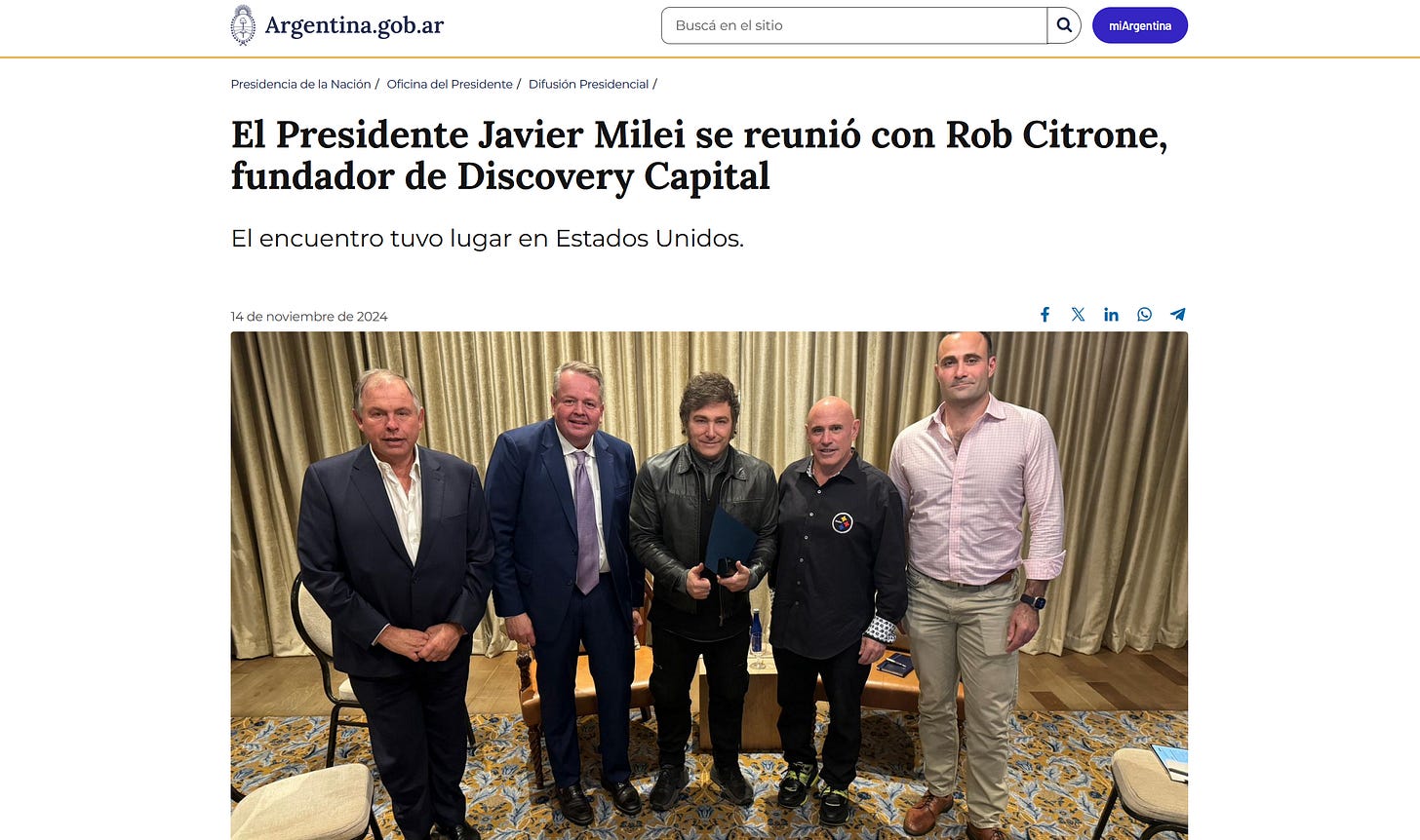 Citrone is also an important ally of Milei, and the Argentine president’s office has posted photos of him with the US billionaire oligarch on its official website.