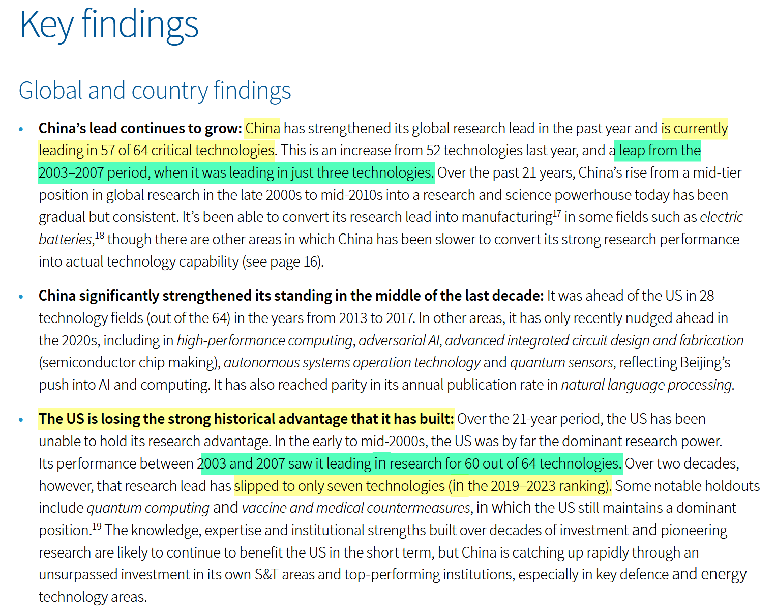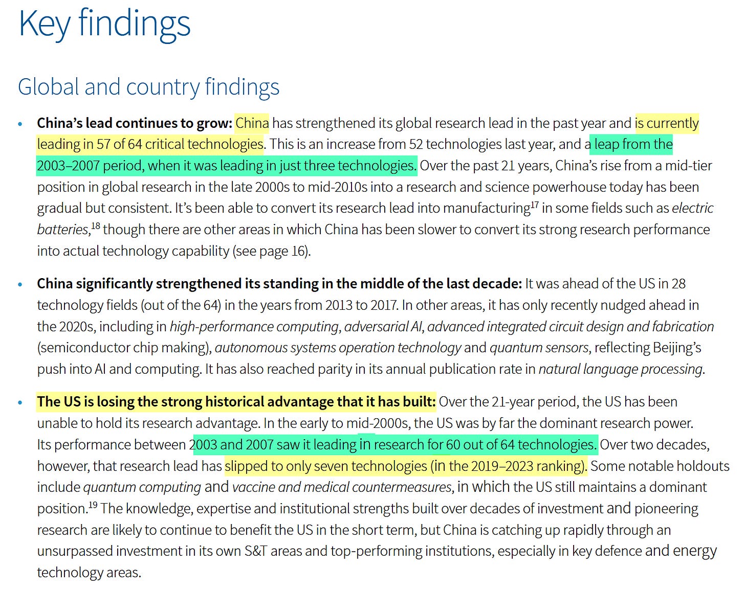 However, ASPI published a report in 2024 acknowledging that China has made incredible technological and scientific progress in a short period of time.