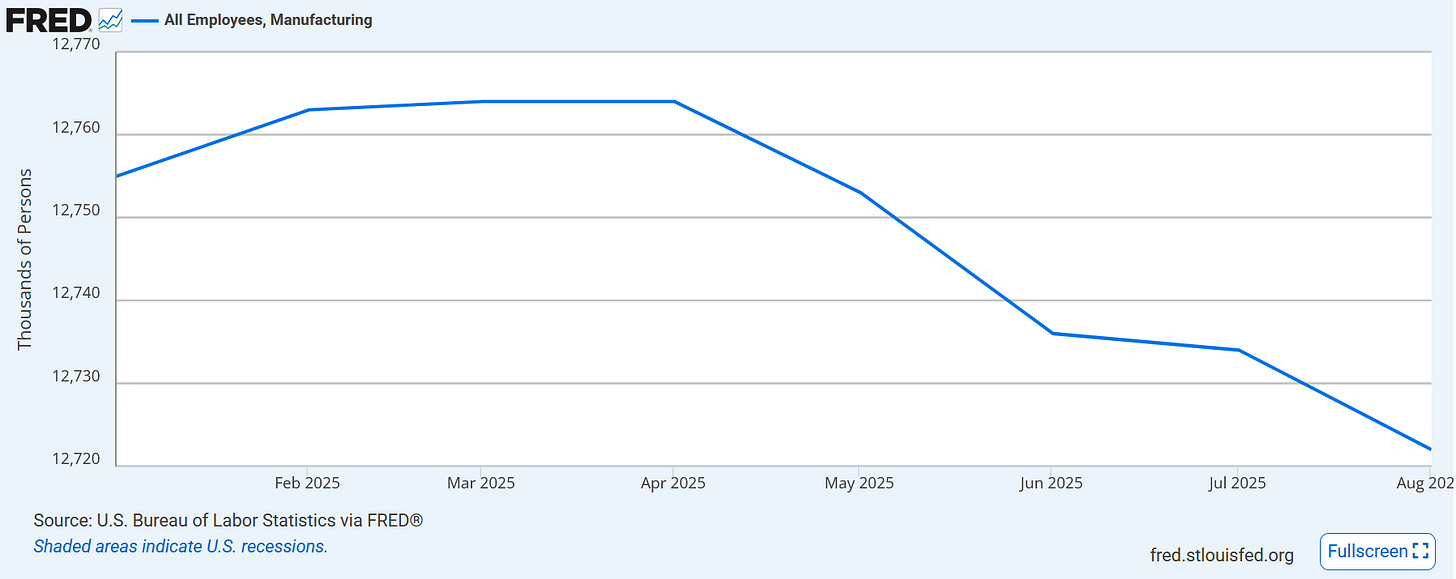 The US lost 42,000 manufacturing jobs between April, when Trump kicked off his global trade war, and August 2025, according to data from the Bureau of Labor Statistics (BLS).