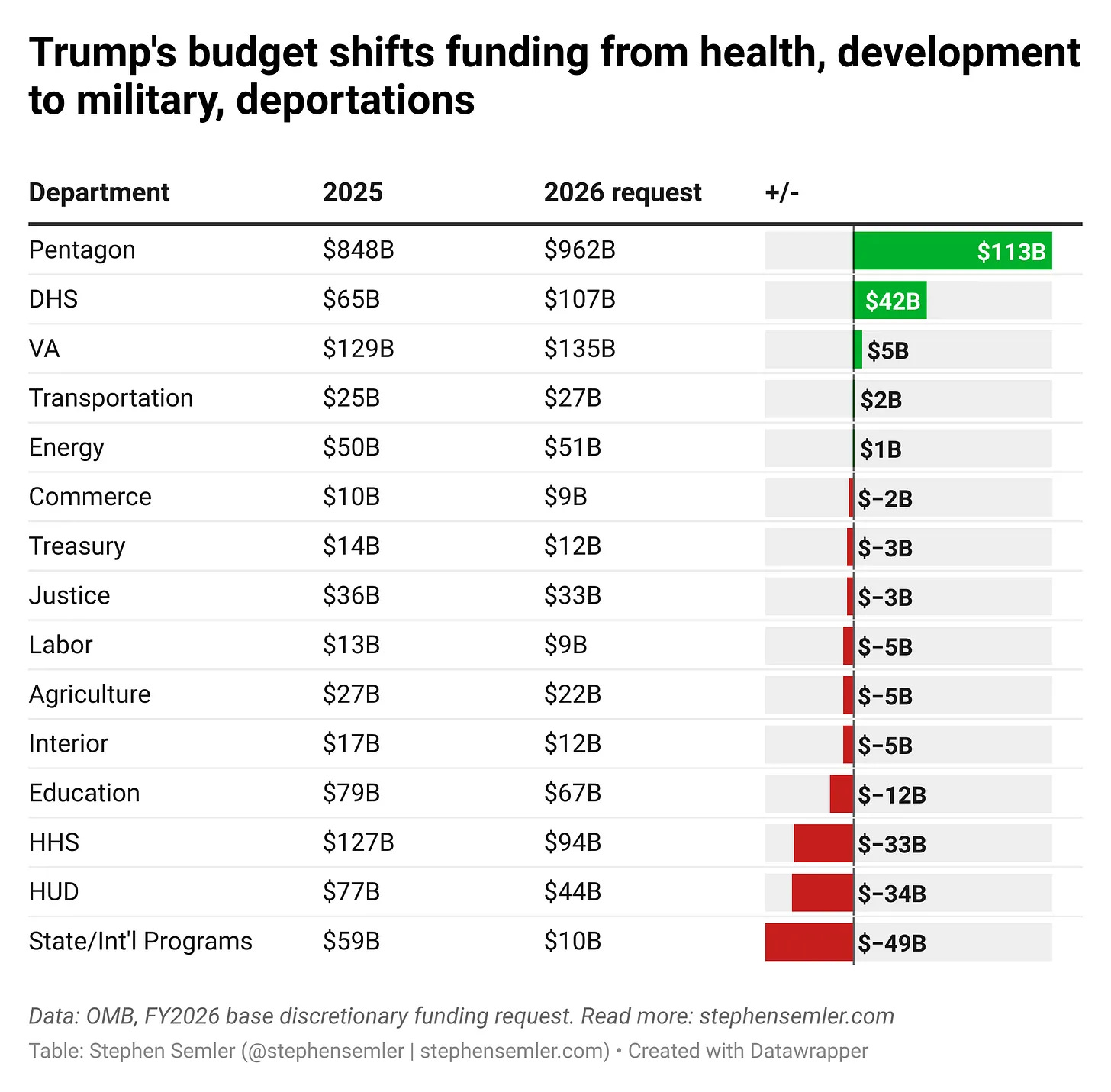 Trump’s 2026 budget will increase the US military budget to more than $1 trillion, while giving significantly more resources to the Department of Homeland Security (DHS).