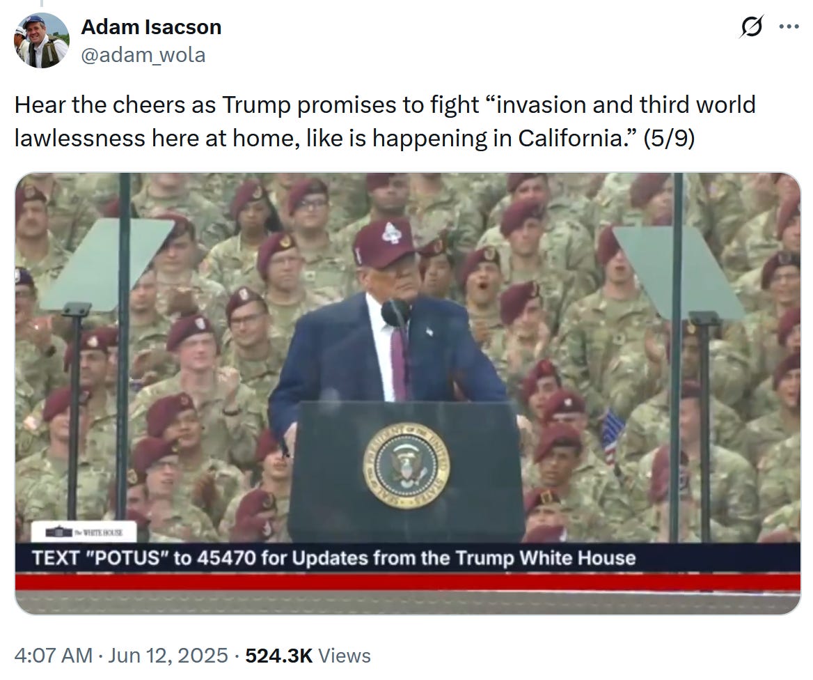 In response to Trump’s colonial discourse, uniformed US soldiers cheered. It was a clear incitement to violence against immigrants and Latino US citizens, enthusiastically endorsed by the US military.