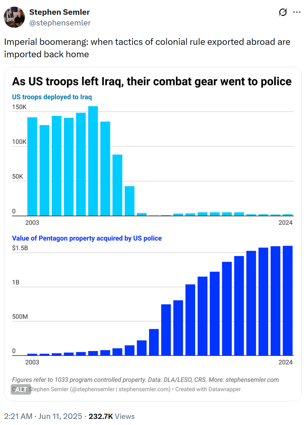 Trump sends military to repress protests in Los Angeles: US empire's tactics come home