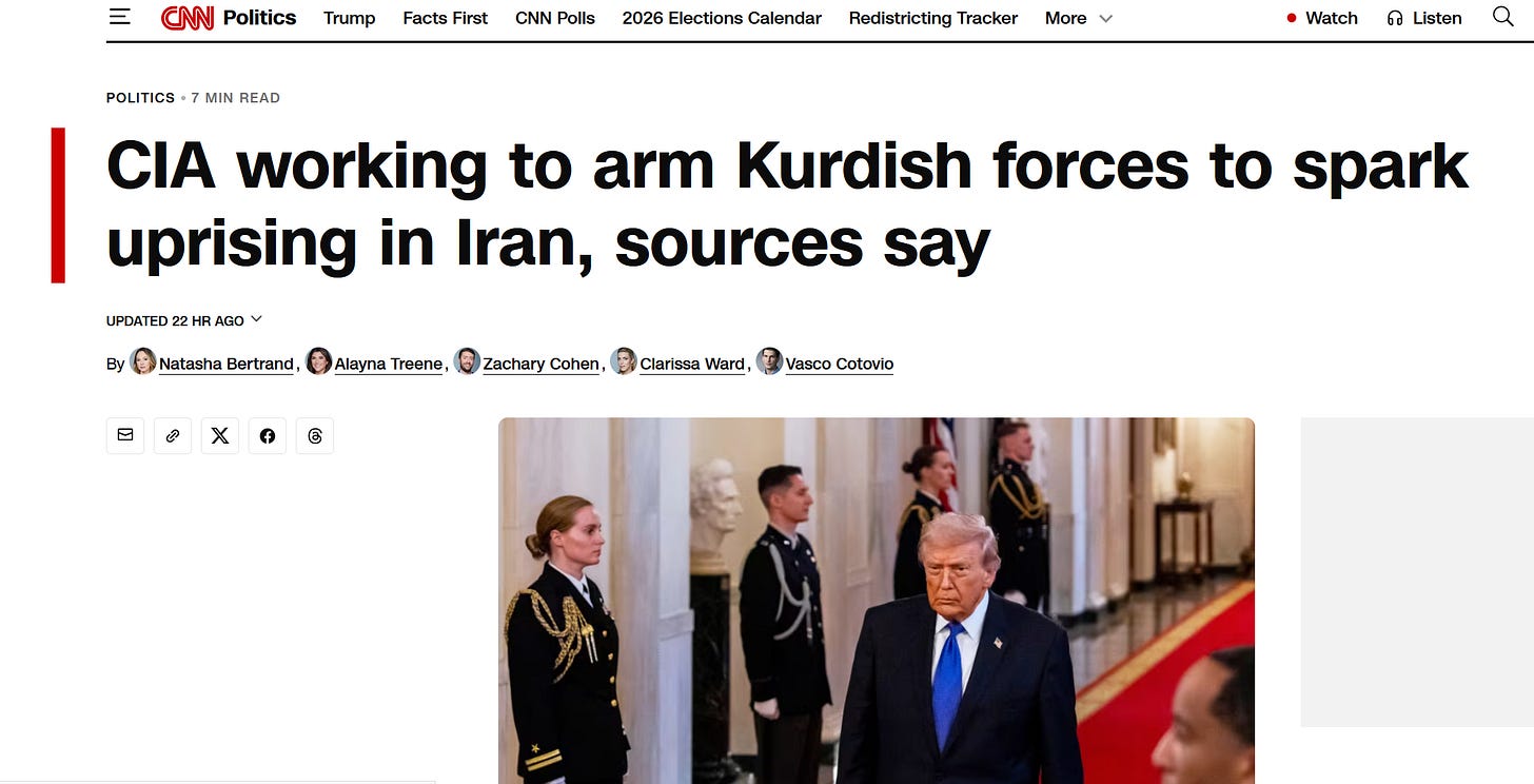 CNN reported that the CIA is arming Kurdish mercenaries in northeastern Iraq. Washington wants them to act as US proxies, invade Iran, and destabilize the Iranian government.