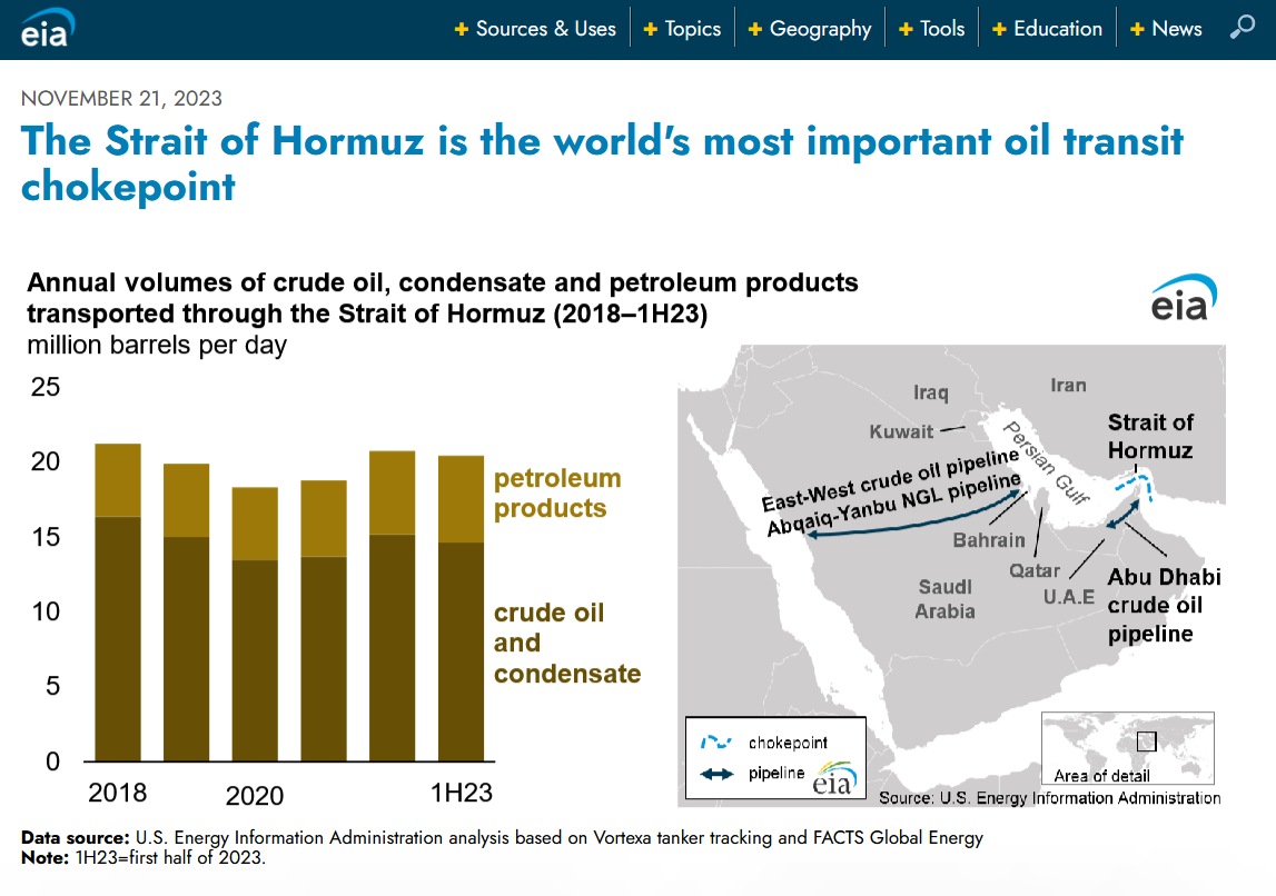 And the determination of who will be able to buy this oil, and natural gas, and helium — these three things — and also by controlling the Strait of Hormuz, it controls the inward shipping of food and other materials to the OPEC countries, so it has a chokepoint over OPEC countries, as well as over foreign oil users.