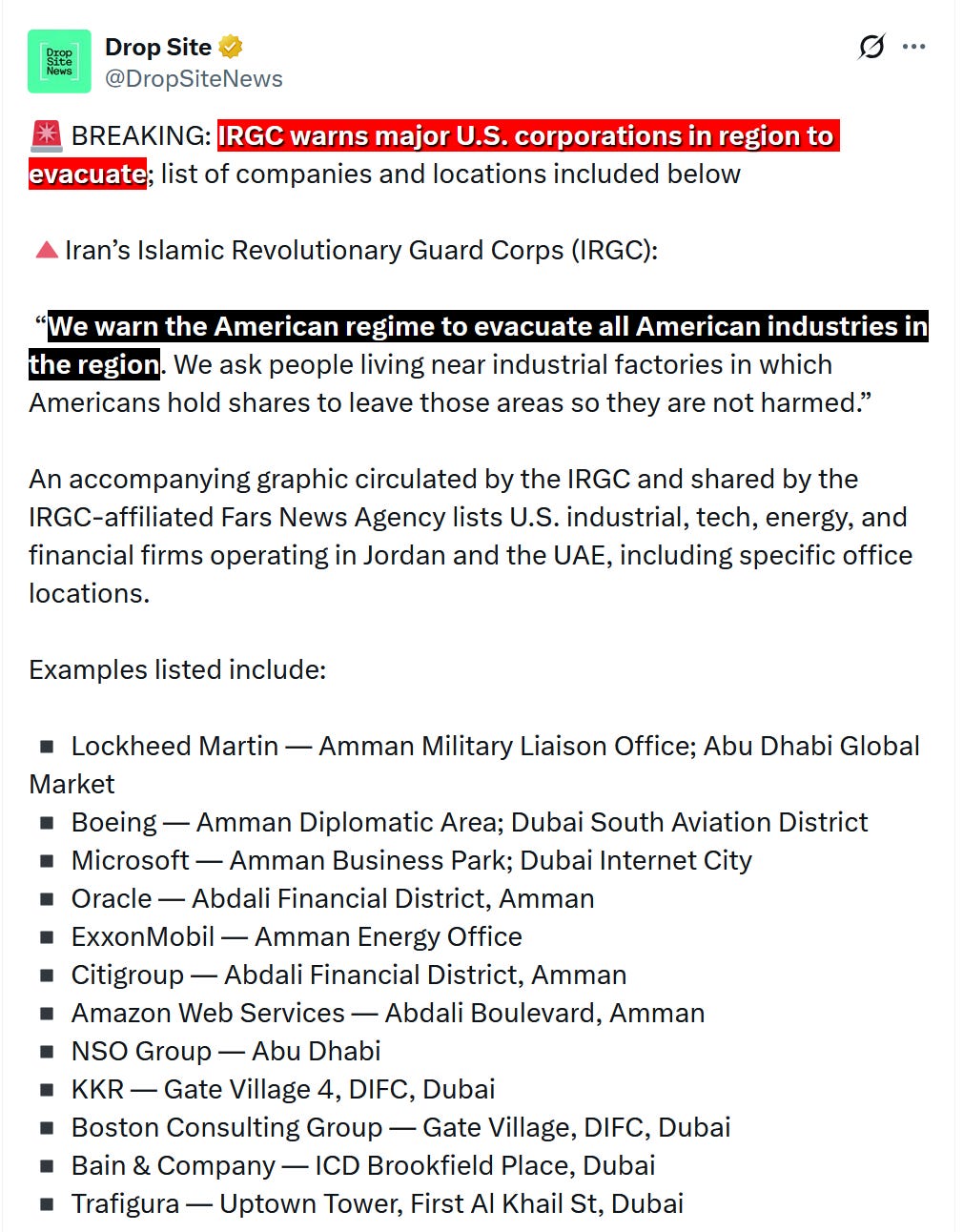 Also, there have been reports that the Iranian military is targeting not only US military bases in the region, but also the offices of major US corporations, including US financial institutions and Big Tech companies, which have been building big AI data centers in places like the UAE.